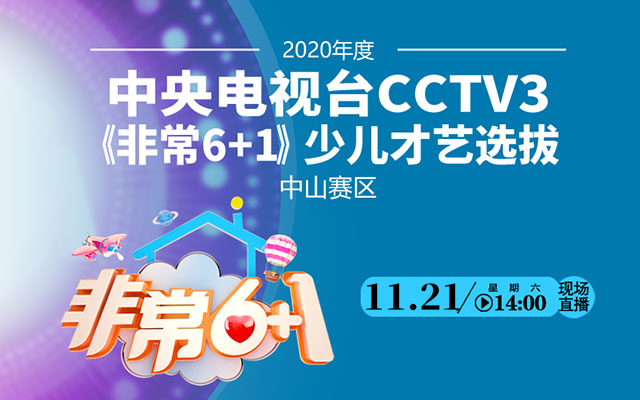 2020年度中央電視臺CCTV3《非常6+1》少兒才藝選拔中山賽區(qū)將于11月21日下午2點舉行,中山日報報業(yè)集團·中山網(wǎng)全程直播,敬請關注!