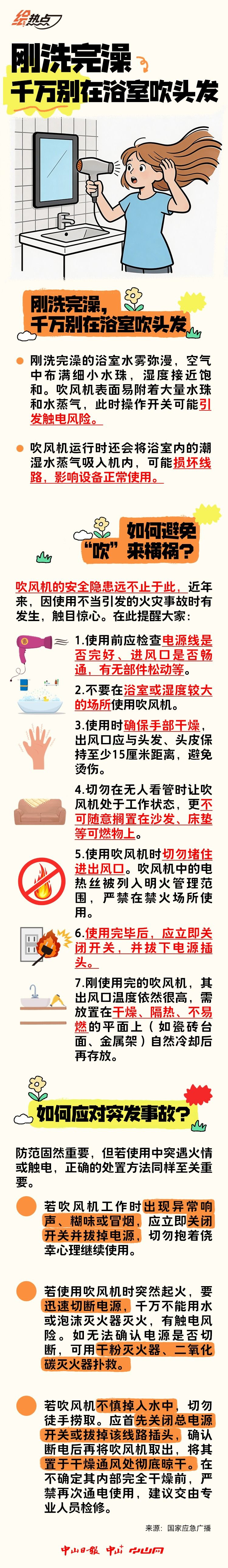 洗完熱水澡,不少人習慣順手拿起吹風機,在浴室里直接吹干頭發(fā)。殊不知,這個看似平常的舉動,實則暗藏不容忽視的安全隱患。