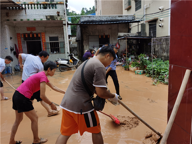 另一邊廂,自1日凌晨3時許,永一村的10余名退役軍人就對轄區(qū)內(nèi)22個生產(chǎn)隊(duì)、工廠、市場附近開展巡查,并對周邊居民住宅、永一市場、茅灣橋底附近進(jìn)行抽水,拉設(shè)警戒線;裕洲村10余名退役軍人在村干部的帶領(lǐng)下,從凌晨3時就開始對轄區(qū)內(nèi)蜘洲山、生產(chǎn)隊(duì)、代耕戶、工廠、市場附近一帶巡查,勸導(dǎo)20余名群眾安全轉(zhuǎn)移,幫助30余戶村民住宅抽水排水,調(diào)用2臺大型鉤機(jī)清理路面上的淤泥,修復(fù)斷裂的道路,確保了道路的及時暢通。坦洲鎮(zhèn)退役軍人紅旗志愿服務(wù)隊(duì)隊(duì)員、裕洲村退役軍人梁容漢說:“雖然我已退役多年,但軍人骨子里的那份家國情懷從未改變,不管什么時候,只要黨和人民有需要,我們義不容辭!”