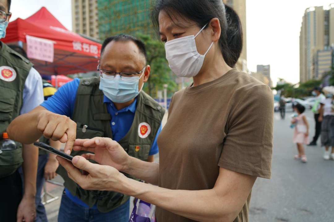 “您好,請問登記信息了嗎?”“奶奶您好,請您走綠色通道吧,不用排隊(duì)的,我?guī)?。?月6日至9日,中山開展大規(guī)模核酸檢測,中山市退役軍人紅旗志愿服務(wù)隊(duì)到南區(qū)街道一居民小區(qū)內(nèi)開展防疫志愿服務(wù)活動(dòng)。
