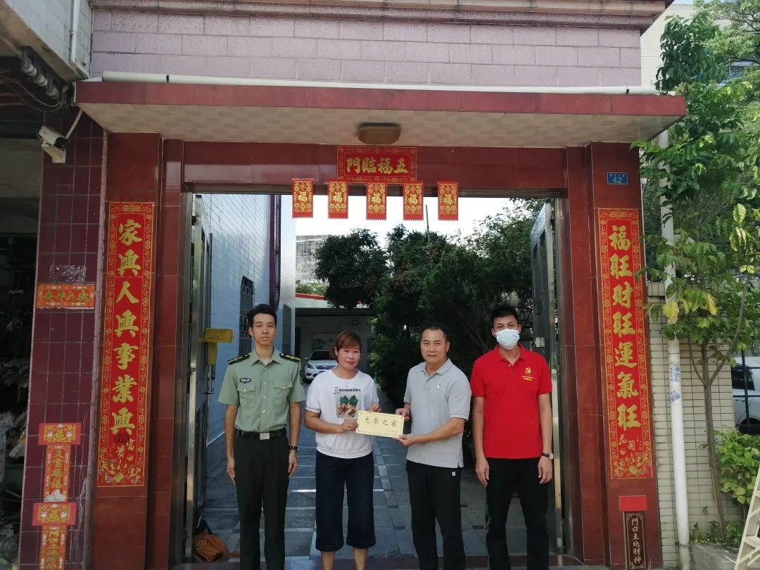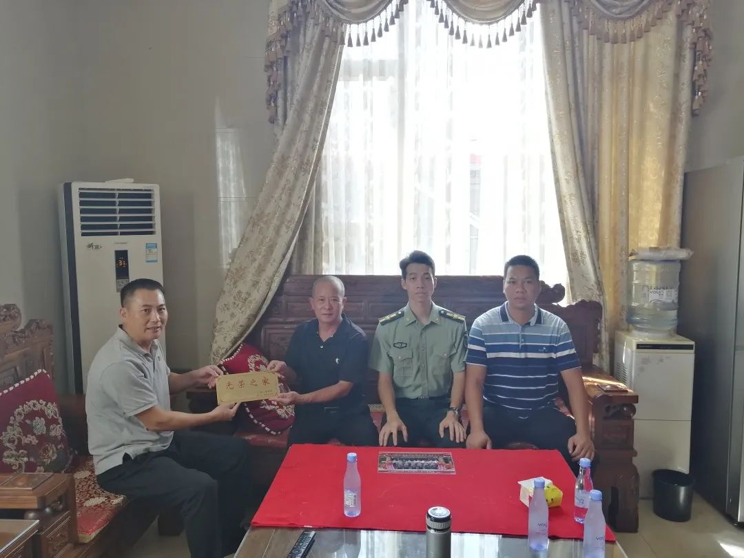 為進一步鞏固和發(fā)展軍政軍民團結(jié),弘揚新時代擁軍優(yōu)屬的優(yōu)良傳統(tǒng),推進軍人榮譽體系建設(shè),營造關(guān)愛軍人的濃厚社會氛圍,7月15日上午,阜沙鎮(zhèn)武裝部、退役軍人服務(wù)中心聯(lián)合走訪今年入伍的6名新兵家屬,為其家庭懸掛“光榮之家”門牌,送上入伍電子相冊,了解新兵在部隊的訓(xùn)練、學(xué)習和生活情況,增強軍屬家庭的榮譽感和自豪感,讓他們切實感受到黨和政府的關(guān)愛和溫暖。 在新兵周志偉家中,其父親周錦元自豪地說:“雖然非常舍不得志偉離開我們,但是送他到部隊鍛煉,為國家作貢獻,心里還是很高興的,也非常自豪。今天你們來給我家掛光榮牌、送相冊,我們?nèi)倚睦锱?,非常感謝黨和政府對我們的關(guān)心?!?/p>一人參軍,全家光榮 一塊刻著“光榮之家”的小小牌匾 對軍屬家庭來說卻是一份特殊的“禮物” 牌匾雖小