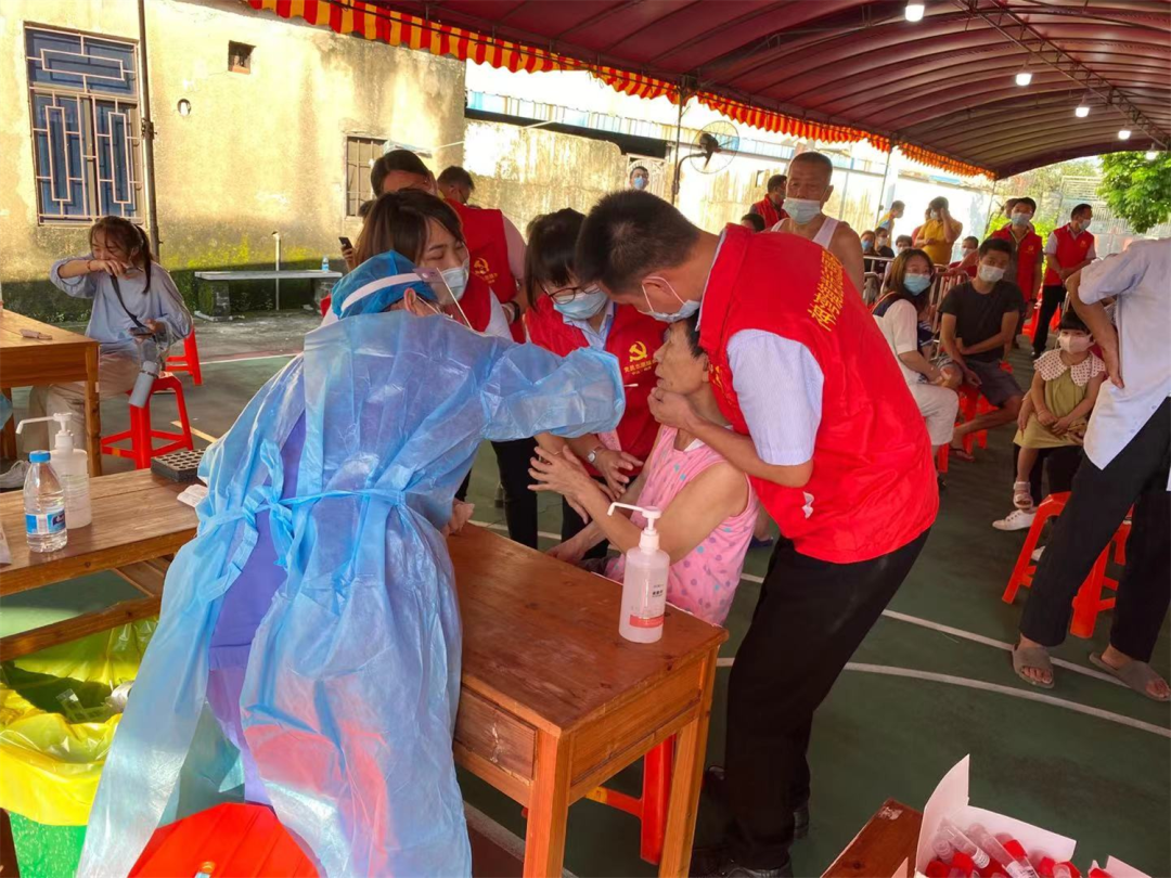 疫情就是命令,防控就是責(zé)任。神灣鎮(zhèn)上下聞令而動,黨員干部、醫(yī)護(hù)人員、村(社區(qū))工作人、志愿者快速投入戰(zhàn)斗中,共同織密織牢聯(lián)防聯(lián)控“防疫網(wǎng)”。 由于時間緊迫,有的醫(yī)務(wù)人員和各村(社區(qū))工作人員、駐村工作組整個上午連水都沒喝上幾口。為了節(jié)省時間,中午他們在接種點(diǎn)簡單吃個快餐,又開始新的戰(zhàn)斗。 居委會
