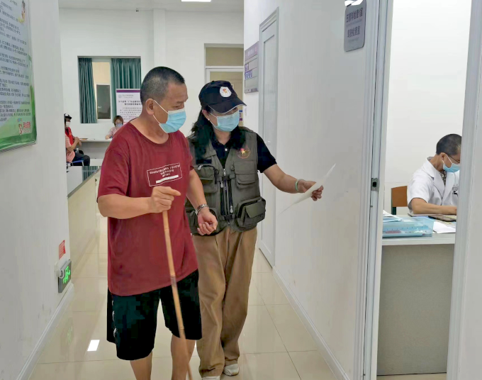 火炬開發(fā)區(qū)退役軍人服務(wù)中心工作人員引導(dǎo)重點優(yōu)撫對象參加健康體檢。