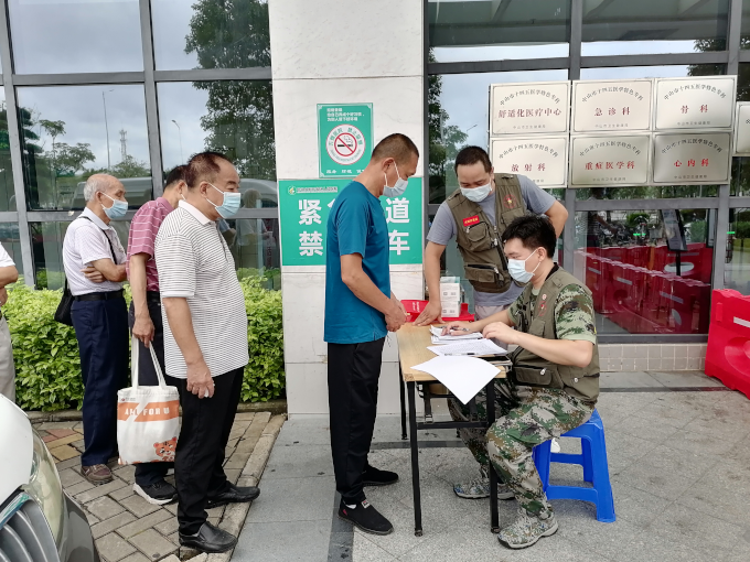 坦洲鎮(zhèn)退役軍人服務(wù)中心工作人員和志愿者在坦洲人民醫(yī)院現(xiàn)場指引重點優(yōu)撫對象有序進(jìn)行健康體檢。