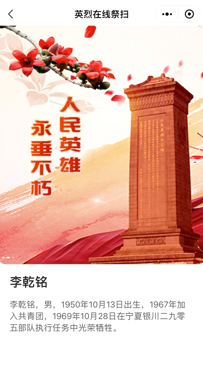 查看英烈名錄,點(diǎn)擊英烈姓名進(jìn)行祭掃