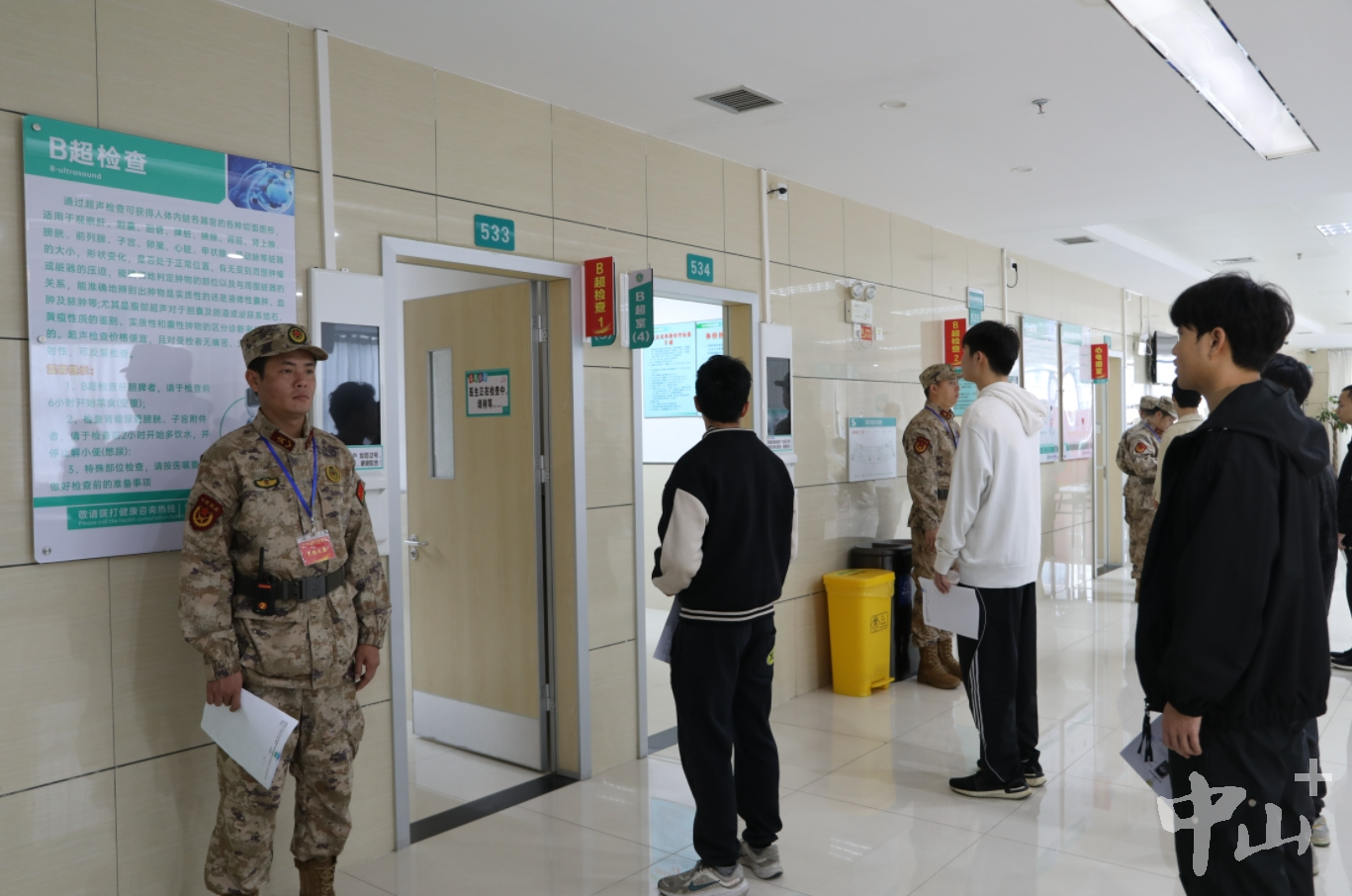 1月20日,中山市2024年上半年征兵體檢在火炬開發(fā)區(qū)人民醫(yī)院開啟,預(yù)計體檢時間將持續(xù)2周以上。 早上7時許,在火炬開發(fā)區(qū)人民醫(yī)院門診五樓,中山市征兵辦工作人員對照名冊開始人員清點(diǎn)。中山市征兵體檢隊(duì)總檢醫(yī)生李燦永介紹,此次征兵體檢面向全市所有鎮(zhèn)街,上站青年預(yù)計有1500人左右,其中大學(xué)畢業(yè)生有800人左右。當(dāng)天有100多名大學(xué)畢業(yè)生參加上站體檢,體檢項(xiàng)目有外科、內(nèi)科、心電圖等多個項(xiàng)目。 應(yīng)征青年排隊(duì)體檢。記者 王云 攝