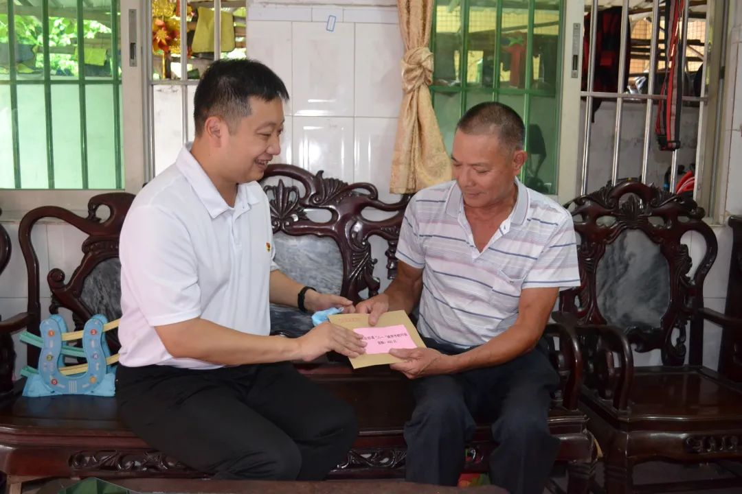 “生活上有什么困難?”“家里近況可好?”當(dāng)天下午,黃聲群一行來到陳炎根家中,為他送上慰問金,認(rèn)真傾聽其實(shí)際困難和生活需求,感謝根叔為黨和人民所作出的貢獻(xiàn)。