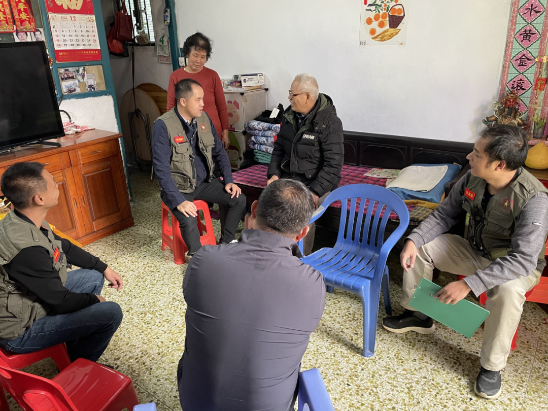 ▲沙溪鎮(zhèn)副鎮(zhèn)長黃家樂帶隊到港園村走訪慰問困難退役軍人