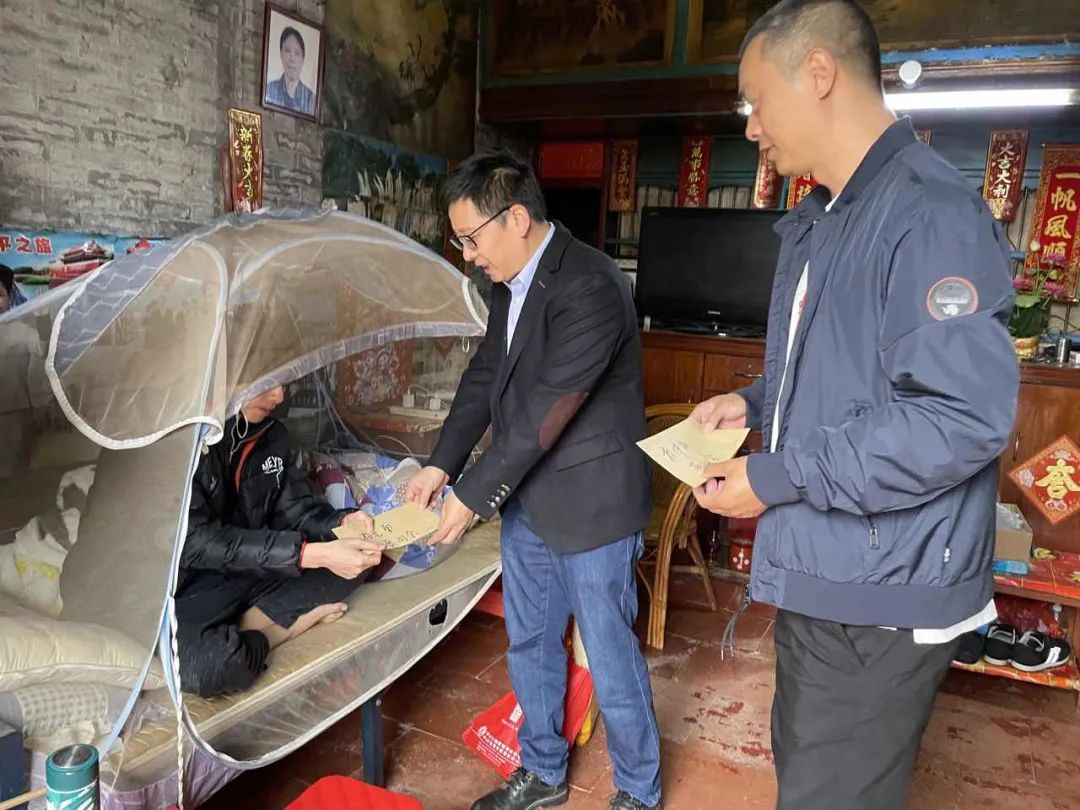 ▲沙溪鎮(zhèn)黨委委員、副鎮(zhèn)長黎宇彬帶隊到象角村走訪慰問