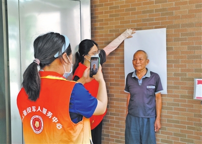 西區(qū)街道退役軍人服務(wù)中心工作人員上門為老兵辦理優(yōu)待證。