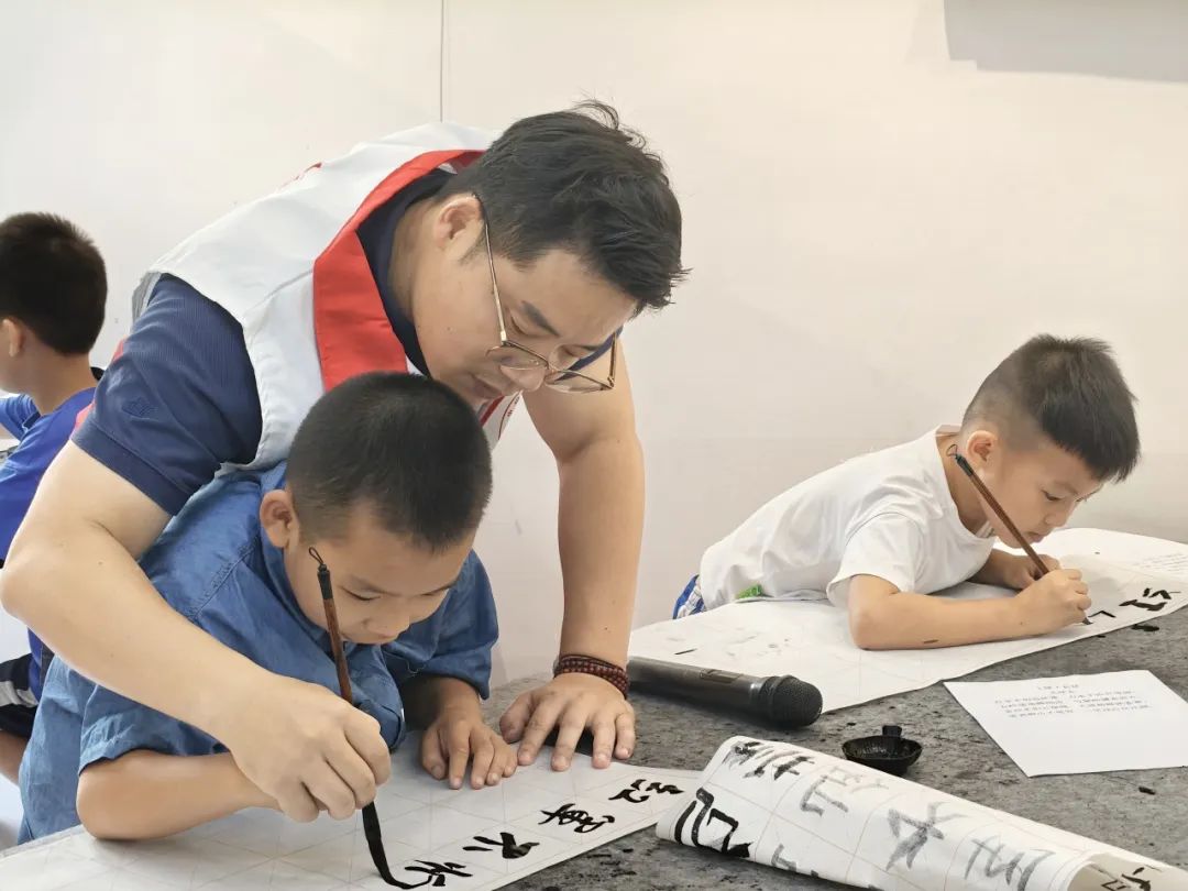 退役軍人走進(jìn)暑期夏令營教孩子們寫書法