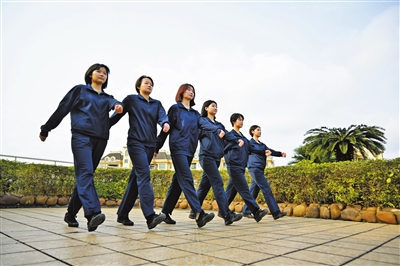 應(yīng)征女青年在進行操練。記者 易承樂 攝