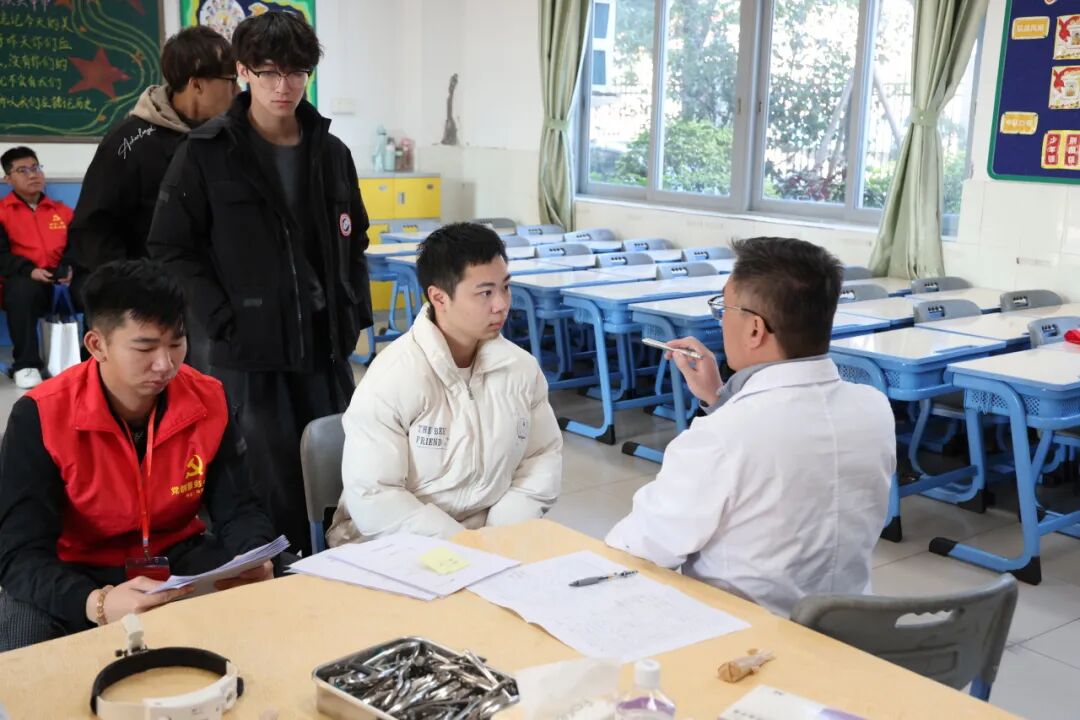 體檢現(xiàn)場,應征青年在街道體檢保障人員的引導下,依次排隊進入內(nèi)科、外科、五官科、眼科、口腔科等檢查區(qū)域,秩序井然。南朗醫(yī)院醫(yī)務人員嚴格按照《應征公民體格檢查標準》(2022年版)和體檢流程,認真核對身份信息,逐項檢查身高、體重、血壓、視力、聽力等項目,確保不漏檢、不誤檢,嚴把兵員質(zhì)量第一關(guān)。