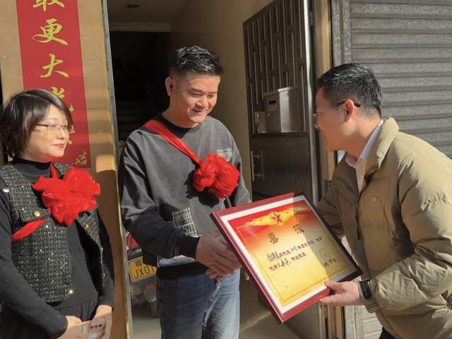 新年伊始,喜報(bào)頻傳。近日,沙溪鎮(zhèn)陸續(xù)收到多份立功受獎(jiǎng)喜報(bào),目前已收悉10位現(xiàn)役軍人榮獲2025年度“四有”優(yōu)秀士兵(軍官)。為弘揚(yáng)擁軍優(yōu)屬光榮傳統(tǒng),營造“一人參軍、全家光榮”的濃厚氛圍,自1月6日起,沙溪鎮(zhèn)黨委、鎮(zhèn)政府領(lǐng)導(dǎo)率領(lǐng)退役軍人服務(wù)中心、武裝部及各村(社區(qū))負(fù)責(zé)人組成慰問組,分批登門為優(yōu)秀士兵家屬送上滿載榮譽(yù)的喜報(bào)和新春祝福。 慰問現(xiàn)場,慰問組為軍屬佩戴光榮紅花,宣讀喜報(bào),詳細(xì)介紹士兵在部隊(duì)的優(yōu)異表現(xiàn),對軍屬們默默支持國防事業(yè)、鼓勵(lì)親人建功軍營表示衷心感謝。接過喜報(bào)的家屬們臉上洋溢著自豪與喜悅,表示將繼續(xù)做好堅(jiān)強(qiáng)后盾,叮囑孩子在部隊(duì)安心服役、再立新功。