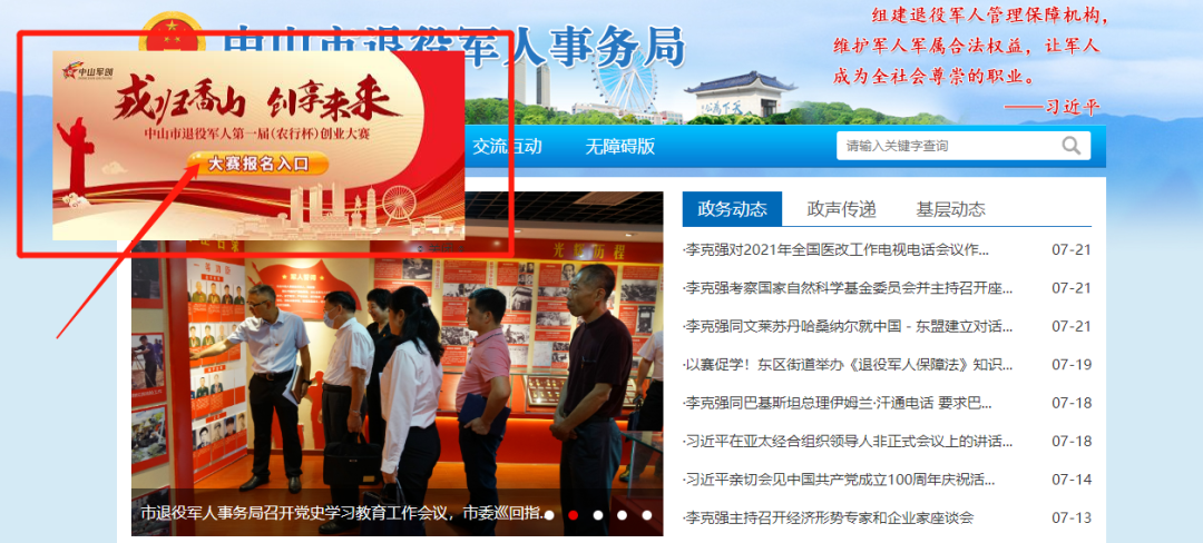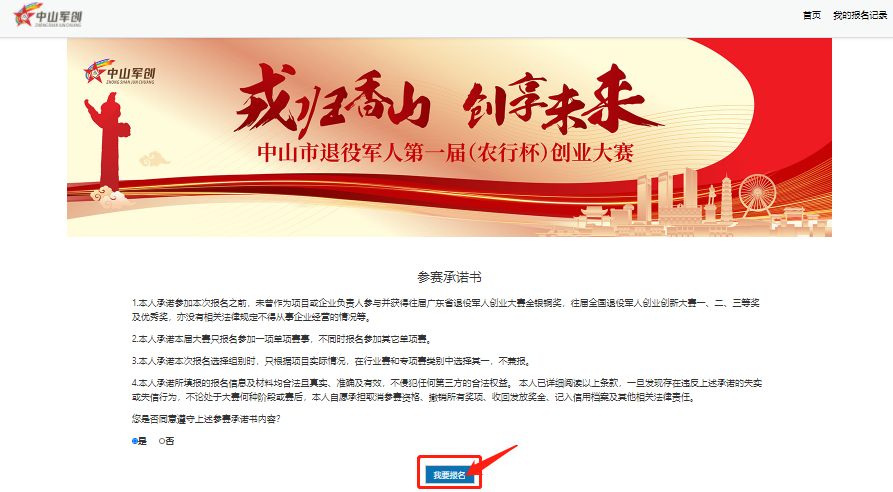 由中山市退役軍人事務局、中山市人力資源和社會保障局共同舉辦,主題為“戎歸香山 創(chuàng)享未來”的中山市退役軍人第一屆(農行杯)創(chuàng)業(yè)大賽正在火熱報名中。為幫助廣大退役軍人更高效、準確地報名參加大賽,制作了以下指引,希望對廣大參賽者有所幫助。