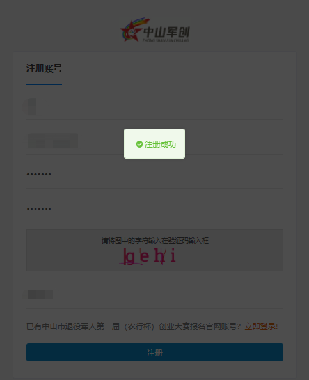點擊【注冊】按鈕,按提示輸入帳號相關信息后點擊注冊,當彈框出“注冊成功”,表示注冊賬號成功!如圖2-4所示: