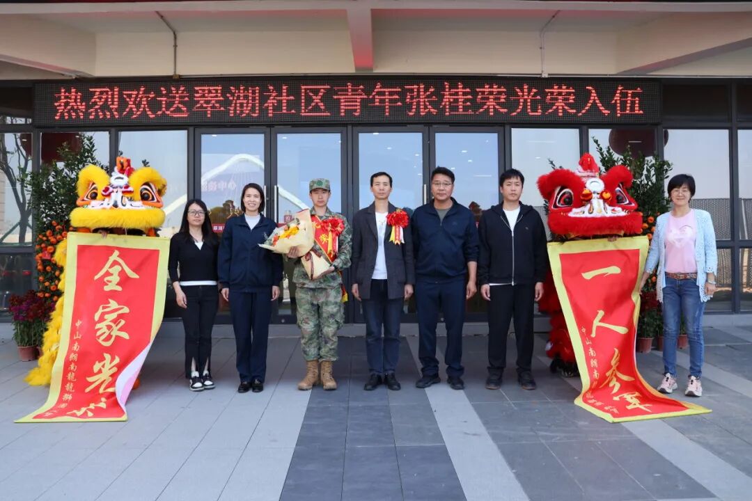 3月12日,中山南朗街道翠湖社區(qū)舉行2026年春季新兵入伍歡送儀式,為即將踏上軍旅征程的新兵張桂榮送行?;顒蝇F(xiàn)場鑼鼓喧天、醒獅起舞,社區(qū)“兩委”班子成員、工作人員、居民代表及新兵家屬共同見證這一光榮時刻。