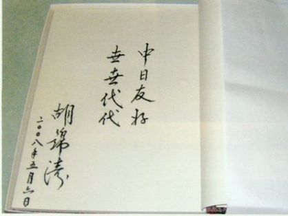 2008年5月6日,胡錦濤主席在松本樓為梅屋莊吉的后人題詞