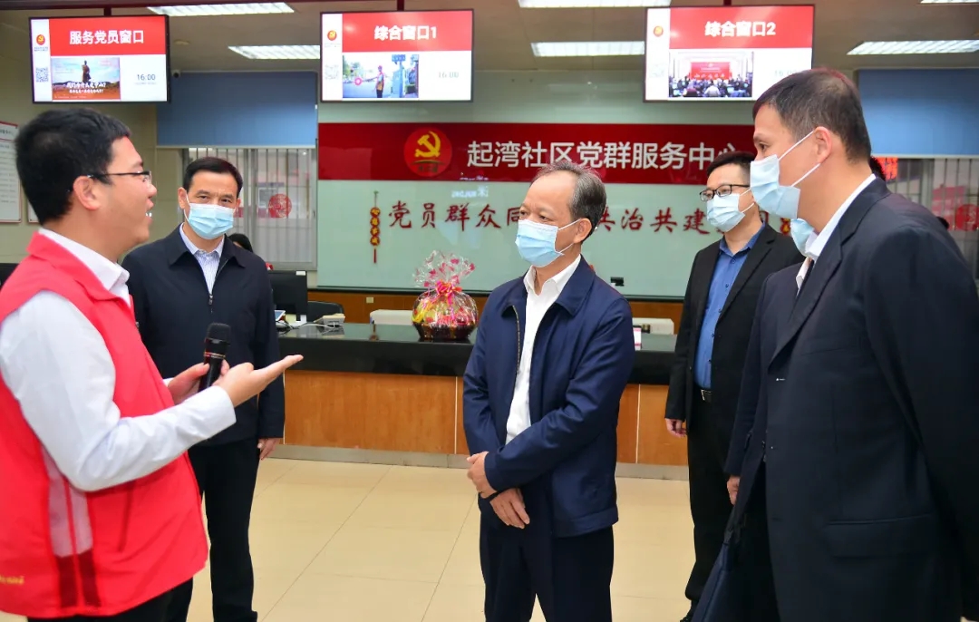 在東區(qū)街道起灣社區(qū)黨群服務(wù)中心,郭文海與社區(qū)工作人員親切交流,參觀活動(dòng)室、功能區(qū)、黨建工作展覽室,聽(tīng)取基層黨組織建設(shè)和疫情防控工作情況?!吧鐓^(qū)非常重要,要通過(guò)黨建引領(lǐng),組織、發(fā)動(dòng)社會(huì)各階層、各領(lǐng)域的人士來(lái)共建共治共享?!惫暮C銊?lì)起灣社區(qū),作為全國(guó)先進(jìn)基層黨組織要在全市樹(shù)立標(biāo)桿,充分發(fā)揮“兩個(gè)作用”,創(chuàng)新工作方式方法,更好地發(fā)動(dòng)群眾、服務(wù)群眾。要加強(qiáng)人文關(guān)懷,深入細(xì)致做好“老幼病殘?jiān)小钡忍厥馊后w的服務(wù)保障工作,切實(shí)兜牢民生底線。