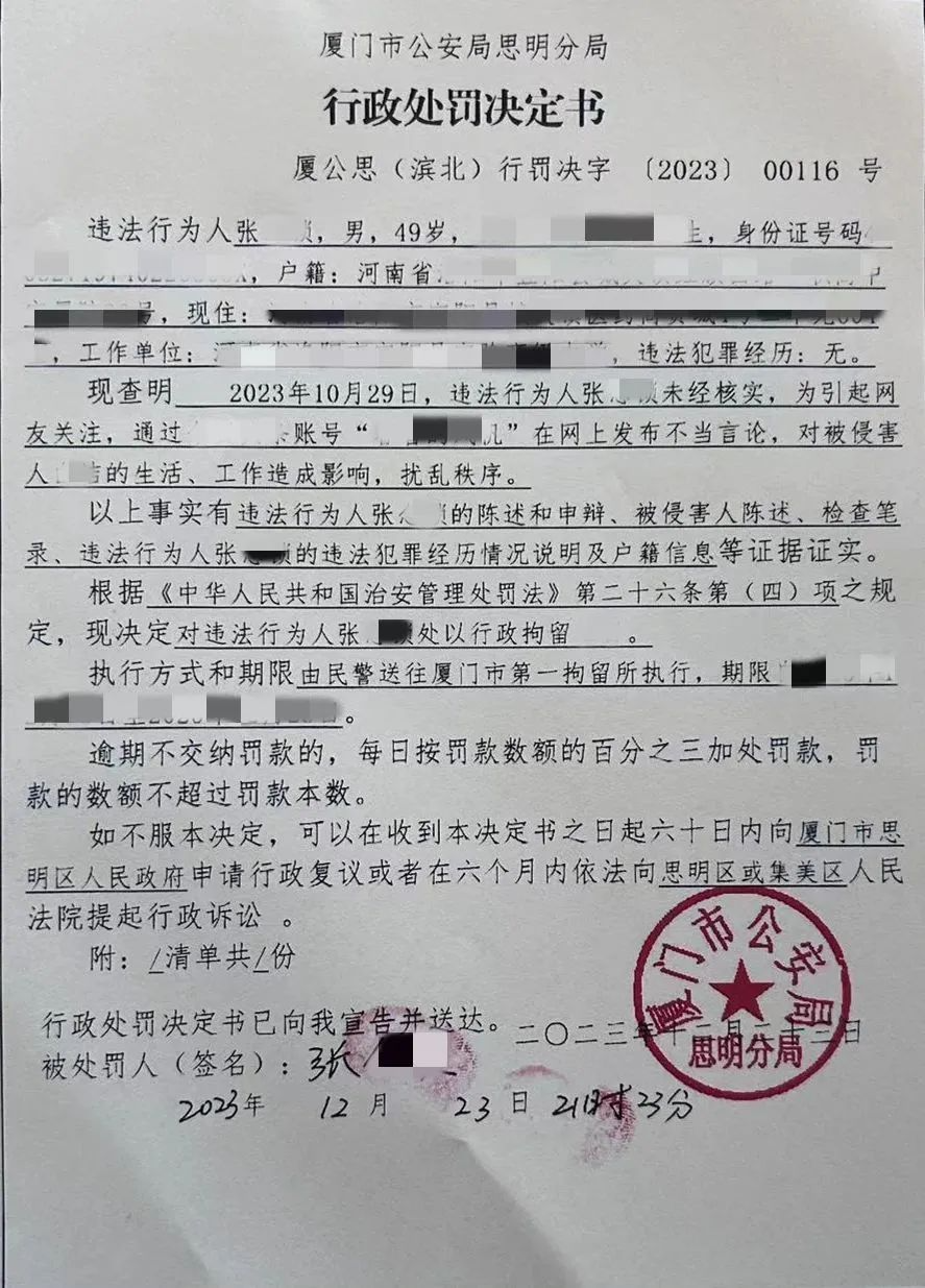 造謠者張某被廈門(mén)警方查獲