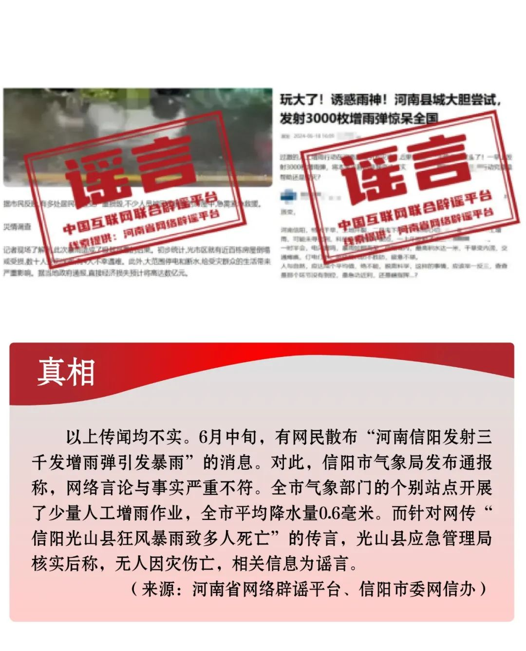 謠言7:河南信陽發(fā)射三千發(fā)增雨彈引發(fā)暴雨?信陽光山縣狂風(fēng)暴雨致多人死亡?