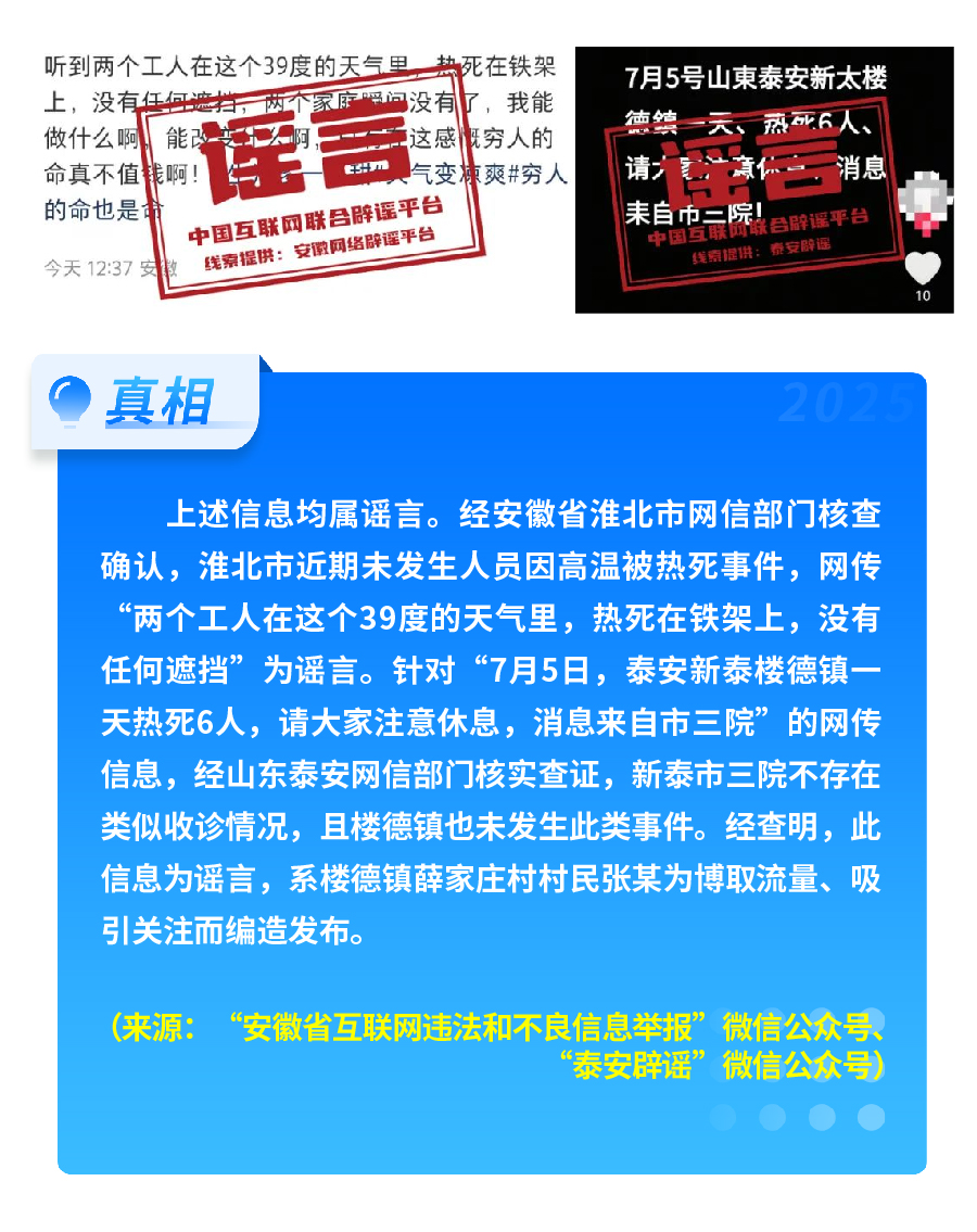 中國互聯(lián)網(wǎng)聯(lián)合辟謠平臺2025年7月辟謠榜