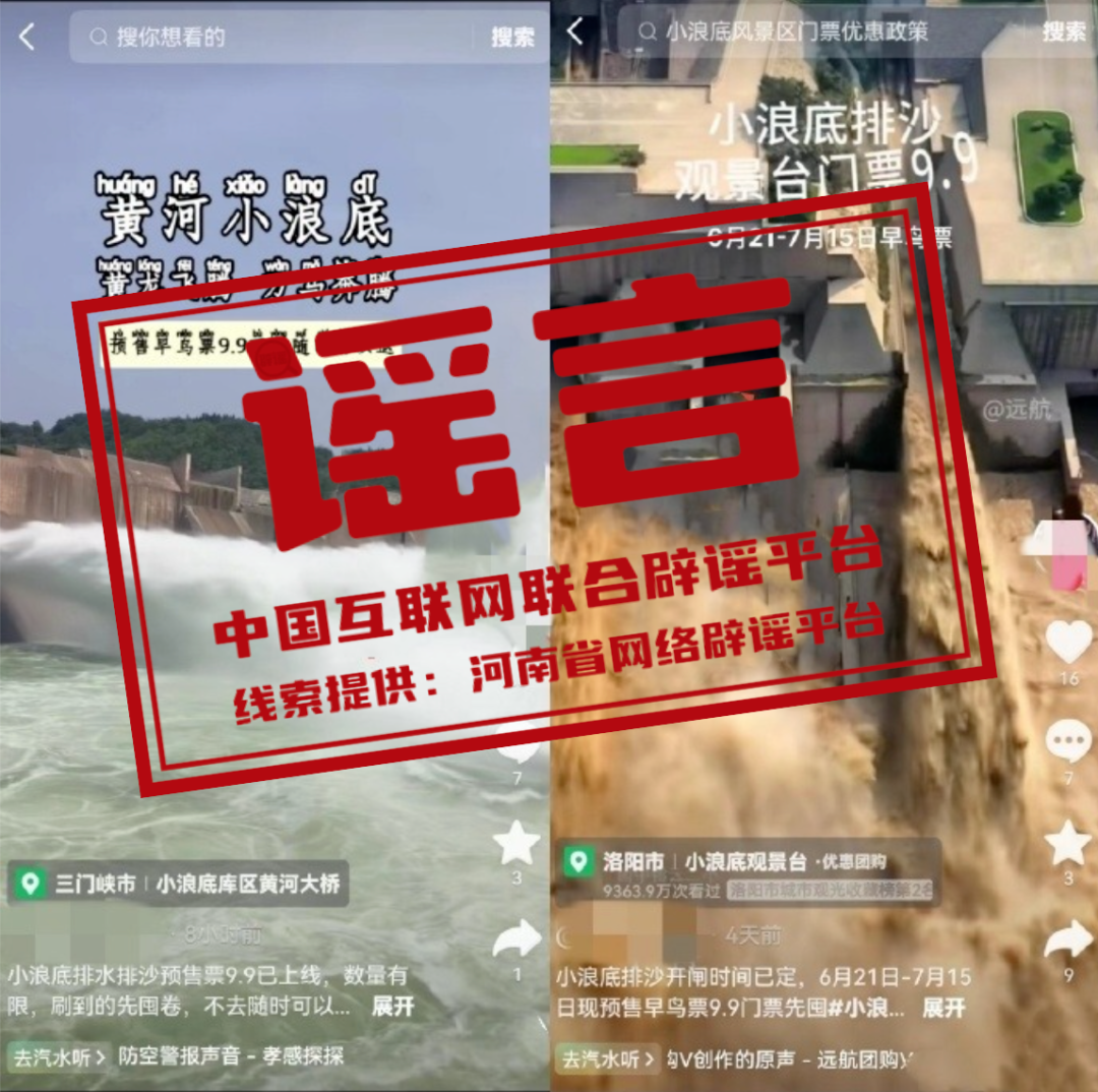 真相:近期,部分社交媒體平臺上出現(xiàn)內容為小浪底觀景臺9.9元門票的相關信息。對此黃河小浪底水利樞紐風景區(qū)發(fā)布聲明表示,小浪底水利樞紐風景區(qū)現(xiàn)執(zhí)行門票價格為40/人,景區(qū)從未開展“9.9元門票優(yōu)惠活動。景區(qū)門票包含小浪底水利樞紐景區(qū)及小浪底出水口觀景平臺。另外,小浪底泄洪時間通常在六月下旬,具體以官方發(fā)布為準,其他均為虛假不實信息。望廣大游客提高警惕,務必通過正規(guī)渠道購票,謹防上當受騙。(來源:河南省網(wǎng)絡辟謠平臺、洛陽網(wǎng))
