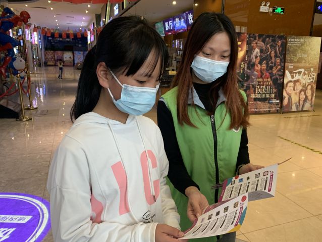 社工在影城擺設攤位