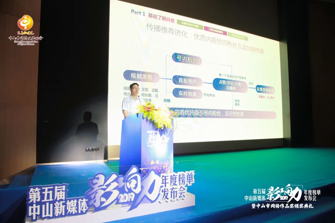 2019(第五屆)中山新媒體影響力年度榜單發(fā)布會(huì)現(xiàn)場(chǎng),由人民網(wǎng)嘉賓單學(xué)剛發(fā)布并點(diǎn)評(píng)2019年度中山市政務(wù)微信、微博影響力排行榜單,活動(dòng)評(píng)出了中山十大最具影響力政務(wù)新媒體(微信)、十大鎮(zhèn)區(qū)新銳政務(wù)新媒體(微信)、年度中山十佳網(wǎng)絡(luò)短視頻、年度十佳最具行業(yè)影響力微信公眾號(hào)、年度中山新銳抖音號(hào)、年度十大優(yōu)秀新媒體創(chuàng)新案例、中山優(yōu)秀新媒體編輯、年度中山十大優(yōu)秀網(wǎng)絡(luò)直播案例、年度優(yōu)秀網(wǎng)絡(luò)主播等獎(jiǎng)項(xiàng),對(duì)2019年度中山市優(yōu)秀網(wǎng)絡(luò)作品和2019年度中山十大好網(wǎng)民進(jìn)行了頒獎(jiǎng),同時(shí)邀請(qǐng)今日頭條專家進(jìn)行了政務(wù)抖音創(chuàng)作課題分享。